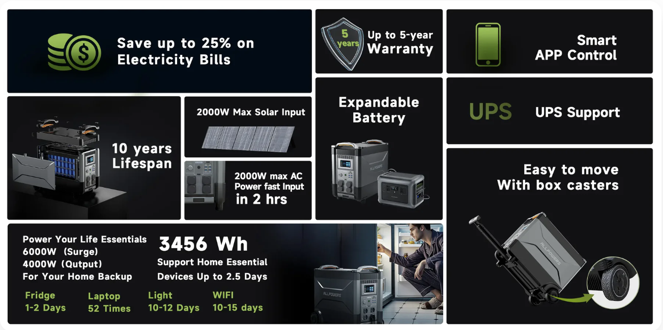 ALLPOWERS R4000 Kaasaskantav Toiteplokk/akupank 4000W 3456Wh